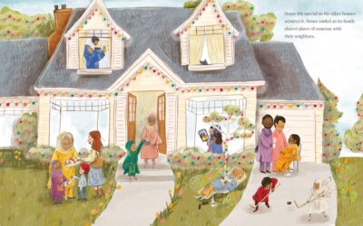 This book is about a house that, at first, is empty. It admires the other houses with its lights for Diwali, candles for Hanukkah and of course, Christmas decorations. One day a new family moves into the house and the house is ready for its winter decorations. But they never come. Even when extended family comes, the house smells like golden rice, you hear feet running, and beds creaking from jumping, but no lights and decorating. You see, they are a Muslim family. On Christmas the parents of the young girl who have moved in must work. This leads to a discussion on why they do this, and their own traditions that will happen later.