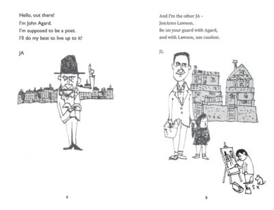 The last few weeks have been filled with one thing after another! I needed some down time for reading as what I have found of late is pretty tough. Prison camps, transgender issues, first crushes, The Holocaust. Therefore I found this odd and little looking book called, Wise Up! Wise Down!: A Poetic Conversation by John Agard, JonArno Lawson and illustrated by Satoshi Kitamura on line and read it for a nice winding down.