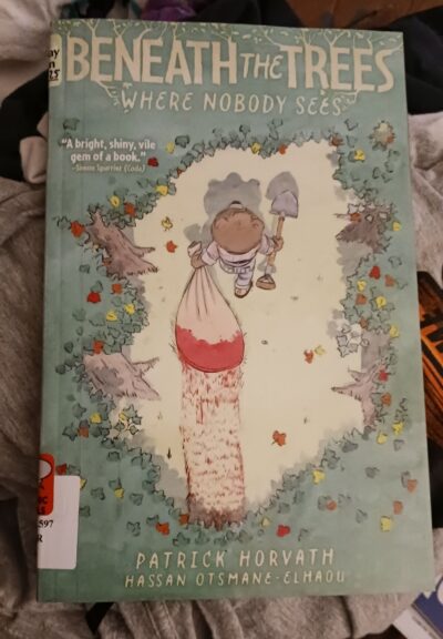 I don’t know about you, but the cover of Beneath the Trees Where Nobody Sees is a bit misleading. Then, after you realize it is not just a cute story of a person planting trees, it becomes down right disturbing! I now know that the creator, Patrick Horvath is a very odd person (and I might not go onto other things they create) and Hassan Otsmane-Elhaou had their hands full doing their part of things. Things are just warped. And I am not the only one who thinks this: