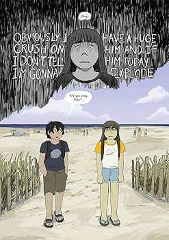 I guess at ages 12 to 14 first love does start to happen, so it’s good to have the idea of not getting lost in your relationship to the detriment of your friendships and yourself, plus show that things can get a bit “hot” at times (they only have a bit of PDA and kissing, so it is tastefully done, so to those of us who recommend a book: not only know your reader here, know the buyer and/or giver of the book). And this part is familiar to most readers who have done any coming-of-age reading. When the main character, Amber, wishes that everything went away and it was just her and Nico, it comes true. Here is where we have a little less familiarity by having their “play world” start becoming less fun as reality starts to sneak in. As I read an online reading copy (though it is currently available), I am not sure how the colors will be, but what was in the reader copy was minimalistic colors, and nice, cozy and simple but not lacking with the details. Overall, there was a good feeling about everything, it is modern (LGBTQ themes, casual representation of a Filipino main character, dating themes, with the classic kid fun stuff (going to the beach, gaming, etc.) and enjoyable. I look forward to reading more by Diaz as they seem to be a strong new voice in middle reader graphic novels.