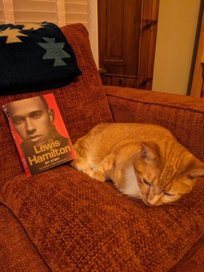 Because I wasn’t watching F1 during Hamilton’s start, I didn’t know much of anything that happened during his rookie year (like, th fact that he nearly won the World Driver Championship that year!), and that section of the book flowed a bit better. He covers most of the races, and addresses the ‘Ferrari issue’, which I didn’t know about and had to look up online before it was explained. I also wonder how Hamilton feels about some of the things he shares now that many more years have passed – talking about how cool it was to meet P Diddy (yikes), and giving over a paragraph to how much he enjoyed being on a talk show with David Cameron and how he wasn’t really into politics (double yikes). But also, like, what 39 year old would look back at every decision he made at 22 and think ‘yep, totally nailed it’? Certainly not me…