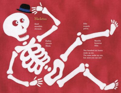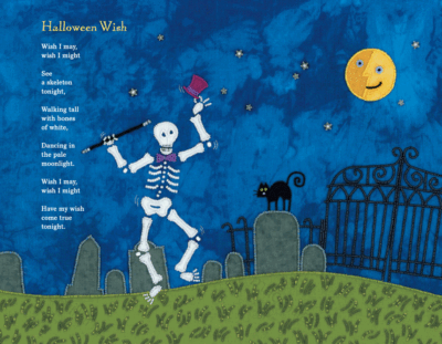 One of the fun things about the book is that it might be about skeletons, bones, goblins and goans, but it is not just a Halloween story. It could be adapted for anytime. I could see a teacher using this book as a way to introduce poetry to students and they would be mostly easy to read/memorize out loud. The only one that might be an issue is one of the bat poems as it is literally upside down.
