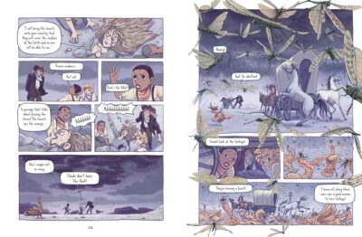 Fun and bright illustrations add to the enjoyment of what boils down to a safe and sweet book. The colors really bring out the prairie, the turkeys and the individual situations. They feel classic but keep the modern reader’s attention. Perhaps best for ages 8 to 10 (with younger readers being able to access the graphic novel with assistance), though there is some action that might not be for a more sensitive reader and/or listener.