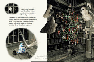 And in later August 2025 Riel Nason and Byron Eggenschwiler will publish The Little Ghost Quilt’s Winter Surprise. This time, since our little ghost is a quilt, they are able to go out on a cold winter day and have fun, but the other ghosts fly fast and freeze fast due to the cold air. And they enjoy indoor activities. Little Ghost does too, but wants to explore. He remembers Halloween and wonders what the humans do in winter. Then we get a delightful adventure of our little ghost sharing what he finds with his ghostly friends.