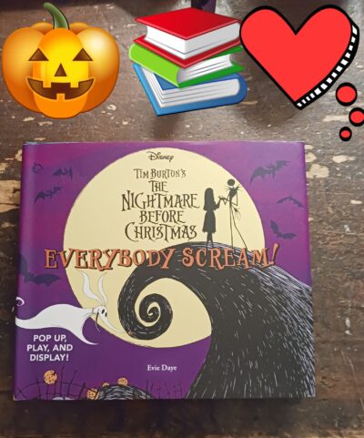 Perhaps Everybody Scream!: Disney Tim Burton’s the Nightmare Before Christmas: Pop Up, Play, and Display! (Uplifting Editions) is for kids (there are “pop ups” that are like paper on a popsicle stick (without the stick) puppets that you can play with via the back cover of the actual book) or perhaps it is for adults. If they are a huge fan of the Nightmare Before Christmas (NBC) franchise, this would be a great addition to their collection regardless. And regardless of who you buy it for (kids, friends/family, yourself) it is a clever little book that is a cute I need a five-second break and/or playtime item.