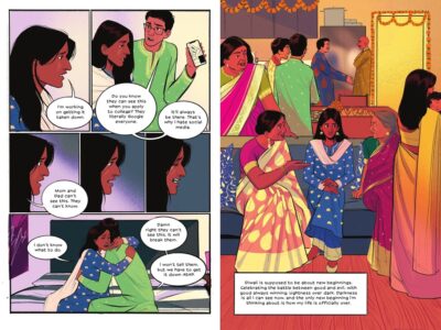Despite the issues, or maybe because of them, this is actually a fantastic story about how mental health is “hidden” even when it is right in front of you. The idea of being the “perfect Indian girl”, the idea of the “favorite son,” the idea of family and honor, and more, makes a familiar story into a fresh point of view. The theme, of course, is one that YA novels/graphic novels cover a lot. But it is one that we need to keep writing about so we can talk about it.