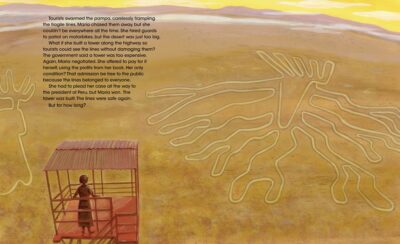 Lady of the Lines: How Maria Reiche Saved the Nazca Lines by Sweeping the Desert by Michaela Maccoll and illustrated by Elisa Chavarri has the privilege of being one of my favorite books of 2025 so far. Due in April 2025 (I read via an online reader copy) I hope you run out and preorder it at your local independent bookstore, buy copies for all the kids (and adults) you know, for town and school libraries, not to mention for the tiny free libraries on the corner of your street.