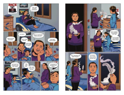 Illustrations are what you would expect in a traditional graphic novel. They are smooth, shiny, rich colors and a bit dark to set the mood. There is light as well, especially when there are flashbacks and the sister is dancing. Everything is nice with how it looks. I still wanted more, and maybe a few “hey look over here” clues (the brother has some interesting interactions with the light and how it helps them), but overall it is good. Which is what I come away with: everything is good. Maybe this horrific event happened, but we are here to talk about it, read about it and hopefully do something to help stop it.