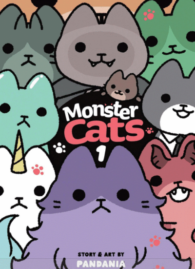What can you say about a book that is titled, Monster Cats Vol. 1? Well, you can say it is by Pandania. You can say it is fun, cute and silly. It is an easy to read manga comic that talks about, in a conversational format, about the “narrator” and their particular monster cats. No, they are not cats who have monster personalities, but are actual monsters: vampires, invisible man (woman?) cat, a yeti, sirens, and even mimics and moving chests. To be read in the manga style, it took me a minute to remember how to read this genre and figure out how the extras worked (as it looked like the list at the end was actually introducing things, but wasn’t…)