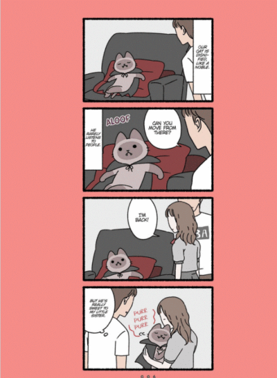 But once I got into the groove of things, it was all good. A few pages will cover the story/introduction/that monster cat. They are short and made with a handful of simple panels that make up each section. Sometimes things are funny and silly, sometimes a bit more serious, but always light and meant to be entertaining. The details are minimalist, the colors felt a bit muted, but not lacking. It is what it is and that is all it is.