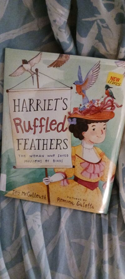 She liked hats. No, she loved hats. But when she learned how the hats with feathers (and even birds) were made, she decided that something must be done! And not only would she start the Massachusetts Audubon Society, Harriet Hemenway would stop women from wearing hats with real birds and feathers on them. And in Harriet’s Ruffled Feathers: The Woman Who Saved Millions of Birds by Joy McCullough and illustrated by Romina Galotta, we are introduced to how.