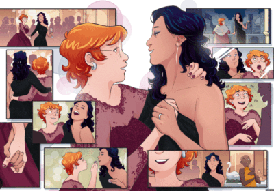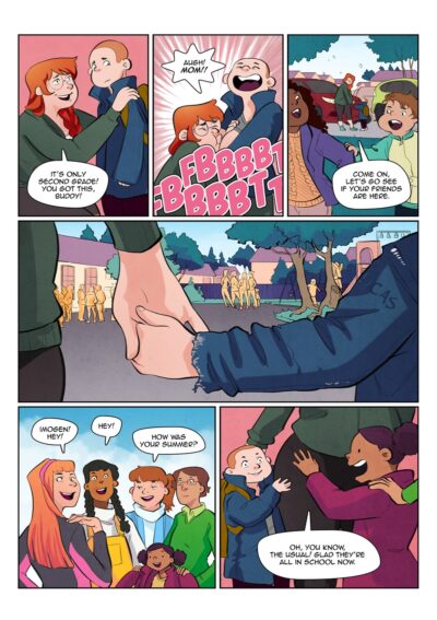 Well, this online reader copy (due May 2025) has all the elements. It is a love story, it is a Girl/Woman power story, and a LGBTQ story. It has a lot of things going on. And while it is lighter, there is some heavy lifting of themes going on. Our gal Imogene is leaving her husband after several years and three kids (the fourth child is from her high school boyfriend), she is a woman who comes of age in a funny, sweet and exciting graphic novel. Our gal Alex, is coming off a breakup, raising a “made herself” child, and coming to terms with the past.