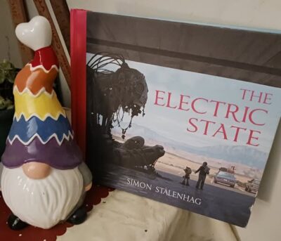 It all comes down to technology. Those who need it, those who want it, those who think it is Satan’s work. Our narrator gives us flashbacks, current events and more as we travel a dystopian world that has no law and order. It only has chaos. And people addicted to neurocasters (a urinal looking unit that is implanted on your head and it controls all. It even controls war. And due to the radiation, it causes stillbirths. Yet, people line up for its orgasmic rush. It is also told in dark, earthy toned illustrations that are almost photographic. The carcass of the machines, old world (hello ads for McDonalds, Burger King, and futuristic companies that started the additions) and more loam across the pages. An oversized coffee table book assaults the senses with some of the more beautiful ugliness around. Don’t judge a book by its cover is true here, as while this is an important image in the book, it does not begin to let you know what they are all about.