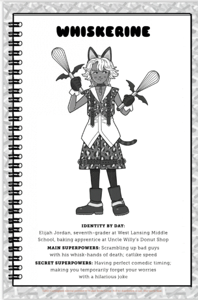 The novel/part graphic novel or novel with several illustrations that make up the narrator’s special world in Donutella Hamachi and the Library Avengers started out strong. Then Kim Chi, Stephan Lee, and Utomaru’s story started to drag.