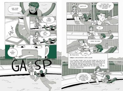 I Hated You in High School by Kathleen Gros is A LGBTQ “friend’s kid sister to friends to enemies to friends to lovers” story that shows even in adulthood you can be unsure of yourself and can still be coming of age and terms with who you are. Overall it is a fun graphic novel that is not too sappy or pushy, but does have a few moments of very Pro-Pride that could be a little sugary. Things are pretty obvious where they are going (after all it is promoted as a “Enemies to Lovers” book) and the way things are set up.