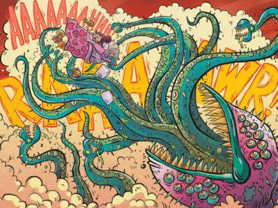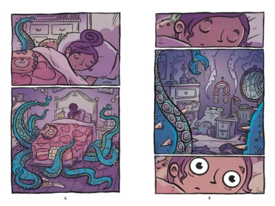 I was looking at my online readers and found one for Nightmare Hunter #1: A Graphic Novel written and illustrated by Brady Smith. Due early April 2025, I almost waited to read it as the cover was not completely “grabbing me” and I was not sure it would be something I liked. It felt as if it would be too “out there,” trying too hard to be funny, going with the “gross out” and frankly, somewhat dumb and not funny, so-called humor.