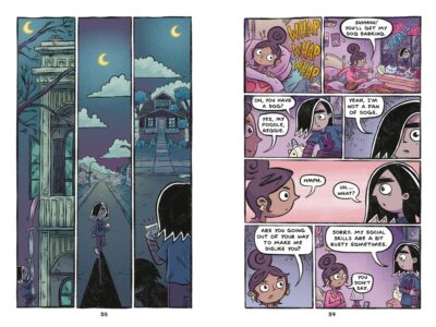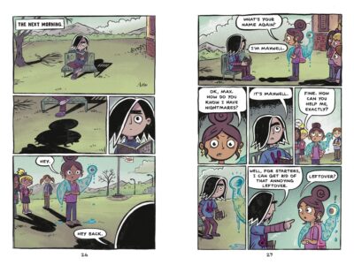 Instead we get some of that as well as Maxwell Dark (don’t call him Max), who takes his talent of seeing what “haunts” you (a girl worried about a school election, a boy who really really needs a bathroom, Sid’s nightmare hanging onto her like an ugly backpack) and well, helps. And we learn, he can also enter your nightmare(s) to help you face your fears. And then there is Sid (Sidney), who really needs his help, but blows him off as she thinks him an emo creepazoid. Not to mention, her friends really are not nice to him/don’t like him and she does not want to seem uncool in front of those cool girls. Of course, a few days go by and Maxwell finally convinces her to let him help and we enter the Danger Zone. Or Sid’s Nightmares.