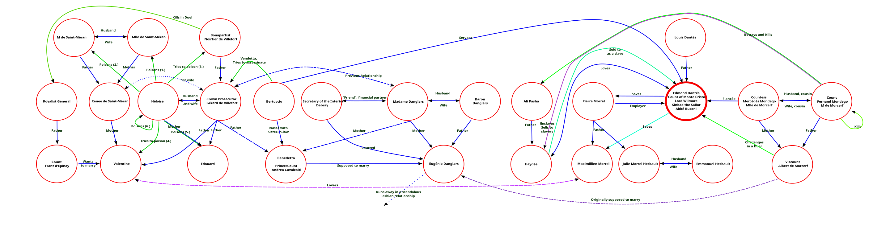 This novel has a spectacular cast of supporting characters, and I found myself pondering which of the three villains was the most to blame. Fernand possessed Mercédès’s affection but not her love, so he destroyed his rival and manipulated her heartbreak to finally win her hand. Danglars is the most petty of the group–professional jealousy is a pretty weak justification for ruining someone’s life, and Danglars metaphorically takes a sledge hammer to a pin by his actions. It would be like a mid-level manager accusing the guy right above him of terrorism to get a promotion.