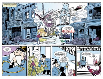 Overall, I liked this graphic novel. I was able to make a list of the suspects and narrowed it down. I figured out the identity of the thief. And had a few other plot points I was able to predict. It is predictable for the adult reader, but if you’re not a big mystery person, the results are a pleasant journey to take. I probably will not purchase a copy when it comes out, as the online readers copy read included the story and the extras at the end.