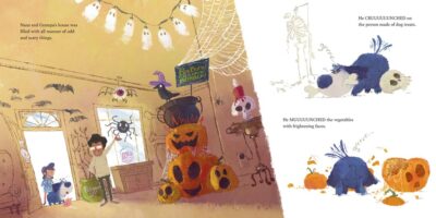 Unlike Murray in Murray’s Howl-o-ween: A Halloween Picture Book by E. G. Keller I love the country (though “after cow” isn’t my fave scent). Murray is a dog that likes the sounds and smells of home. He’s less than impressed with the odd smells, the weird decorations and the company (a cat). But eventually, he will learn about the wonders of something called Halloween and the treats are much sweeter than the tricks of earlier.