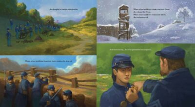 This story was new, fresh, and unknown. I had not realized that there were Chinese soldiers in the Civil War. I knew that history had treated the men and women of the time horrifically, those who were just looking for a better life. I assumed that many would call themselves Japanese due to the racism of the time (and that got me thinking that I’m sure several Japanese people might claim the reverse less than a hundred years later) so this book is also a thinking book. It is something that is still relatable on multiple levels. It is a good book for the classroom and individual. As an adult, I recommend it as well even if it is a picture book..