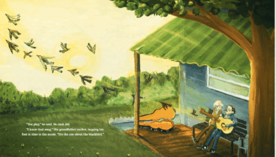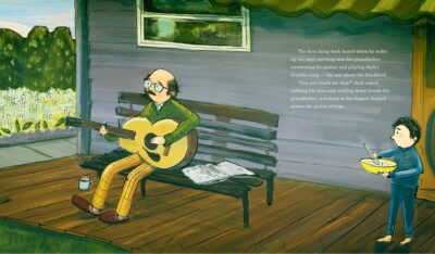 The story is about how a young boy is always surrounded by music. One night he tells his grandfather he, too, wants to make music like his favorite song the one about the blackbird (I assumed the Beatles song, but it could be almost any song which is probably why it is vague to begin with). The next day his grandfather starts to teach him the guitar. Of course it is hard, but the child and grandfather go through the years until it is time for the boy to go out on his own. Later, he returns and their roles reverse as the grandfather is now dealing with dementia.