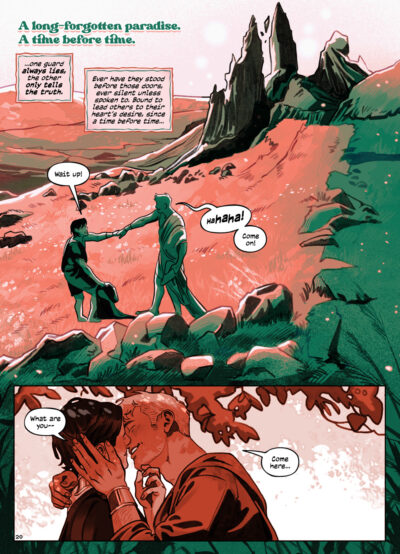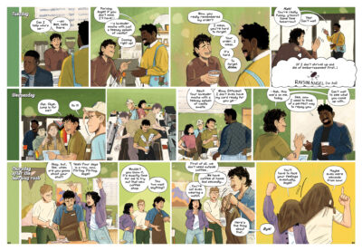 And this includes the illustrations. Different authors and illustrators grace the pages of this short story graphic novel collection. There are some sweet realistic images and some funky slightly more cartoon/comic looking ones as well. Some of the images are mature (but tasteful as the story of David and his lover are shown in the nude, but strategically covered by panels or details, yet there is no question about what is happening/happened and your imagination can fill in the blanks). Both art and text do make this for at least ages 14 and up, with adults as the main targeted age group.