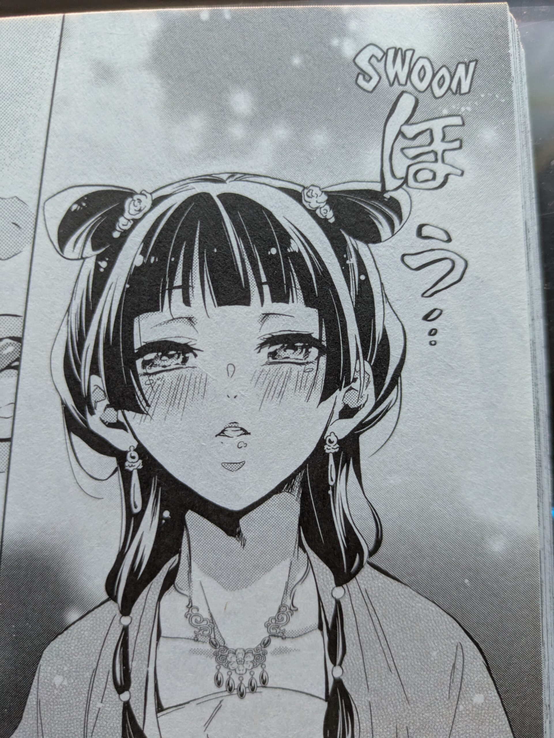 That might sound overwhelming, but the mysteries are well paced. One mystery is mostly solved with enough loose ends to rollover into the next one. And Maomao ends up solving every mystery she’s given as fast as she can so she can lock herself in her room and play with her gallbladders and mushrooms. I mean that literally. She plays and dances with her drugs.