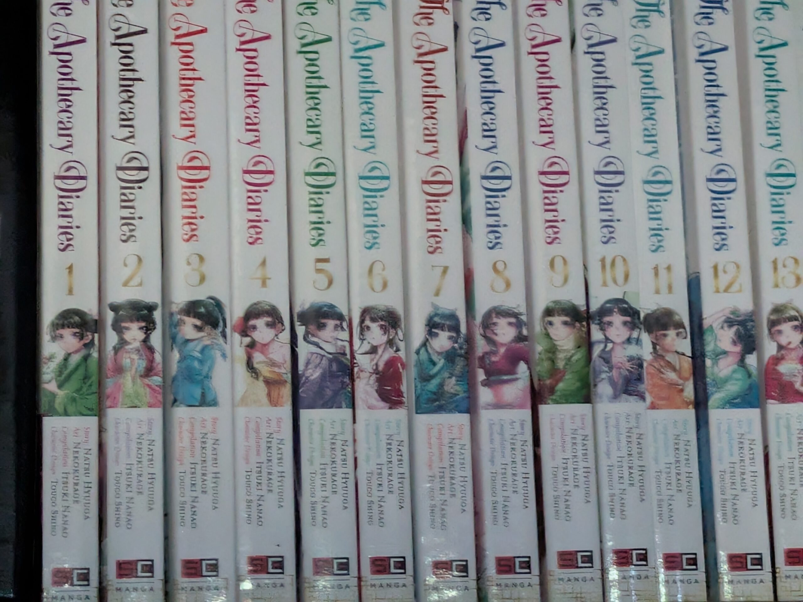The Apothecary Diaries from author Natsu Hyūga is an ongoing series in the form of light novels (aka easy to read books with pictures), two manga series, and an anime. So that’s four simultaneously ongoing series of the same story and despite what people on Reddit say, they’re all about the same and the only real difference is where they are in the story. This review will be for the first 13 volumes of the manga series that is easily available in English by Natsu Hyūga, Nekokurage, and others.