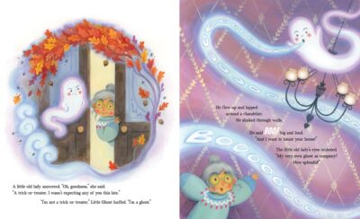 Little Ghost House Hunts by Lucy Branam is an adorable, cozy story about family, (biological and found) homes, and how loud and quiet can be found together. It is a well known theme and with ghost characters and a Halloween overtone, it is a familiar format. But still, it is cute and the ending does give things a little twist to the overall story. I admit, I am really digging the little old lady who shows up near the end. Branam’s presentation is done in cute illustrations that are light and full of life that support the sweet character of Little Ghost. Natalie Hoopes really makes things a smidgen spooky (like a 2 on a scale of 1 to 50, and fifty being the most scary) but mostly lighthearted. Most toddlers will be able to sit and enjoy while their older siblings will appreciate the “busy house” atmosphere of family.