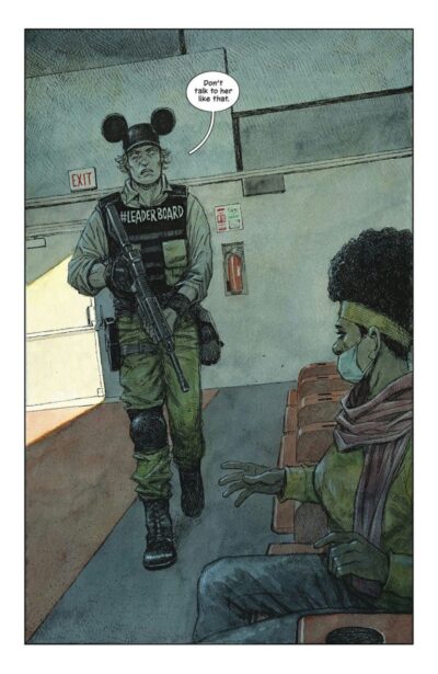 As you see the Spectors (watching) are Specters (ghosts). It is set several 100 years in the future. We are pretty much still doing the same stuff as always (movies, watching porn, having sex, going to illegal strip joints, having orgies in the park). One day there is a terrorist attack. But instead of from outside our borders, it is “home grown.” It is the #Leaderboard game again. When our main character Val was killed in a theater killing spree (several hundred years ago), the guy was sporting the tag (probably not literally but by showing this you realize this is what you need to watch for). It is a “game” of numbers. How many kills can you rack up? When it starts again in an obvious manner (it’s always been there, but the media/government/etc. covers it up) there are two types of people: The Number Ones and the Want to be Memorable (my terms). There is a guy who wants to memorialize the 1984 McDonalds killing as it is in the 69th position of intensity/numbers/etc. He thinks it is funny that it is “69.” Then we have our two main ghosts. They are just there watching people. In fact, Val calls it “tonight’s episode” as she considers it something to entertain her. She was watching a movie when she was killed, but it was boring her so she started to watch porn on her phone. So the idea of sex and violence is intertwined from the start. Things like when the ghosts hear of a new bombing, accident, orgy, or whatever they can watch, they flock to it. It’s all for their amusement, to stop their boredom.