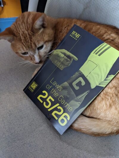 I appreciate that the book also includes explanations for changes to laws from the previous year, as well as tips on positioning and common sense, plus a glossary. Obviously I’m not going to whip it out during a match, but I’ll be reviewing it every week before matches.