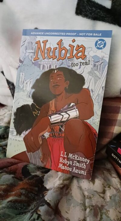 What do you do when the reader copy you are reading is missing the last 20 pages or so? You holler loudly and say, “Darn you whomever made this reader copy! I need to know what happens in Nubia: Too Real by L. L. McKinney and illustrated by Robyn Smith.” You then say, “Well I guess late September/early October won’t come soon enough!” And then you tell yourself you’ll be first in line to get the finished copy and find out what happens to our gal Nubia.