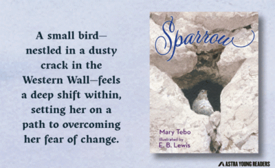 In the Western Wall, lives a Sparrow. The story slowly builds to the end where the idea of hope has unfolded in a special way. Mary Tebo’s story is clever and sweet, but also has a bit of an edge making it powerful, too. E. B. Lewis adds the perfect addition with their floating, soft, pastel colored images. The illustrations are colorful, but not overly so. The details are detailed but not overly so. It is a nice balance that gives it a dreamy and solid format. It is currently available, but I read via an online reader copy. I plan on finding a finished copy as I want to see how large the book (as it is a picture book) is. This will make the ages for which it is best more solid in my mind. It feels as if it is a bit poetic and abstract at the same time.