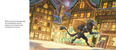 Usually Krampus stories are spooky and not very nice. Oh, I’ve found a board book that was a baby Krampus character once, but usually they are not for kids and I do not care for them. This year, however, I found Tonight Is Krampus Night! by Kyle Sullivan and illustrated by Zoe Persico. In the spirit of “Night Before Christmas” Sullivan makes a funny story about how one young child knows what night it is. It is the night Krampus comes to punish the bad boys and girls. Our child knows he hasn’t been on the best behavior, but is he really that bad?