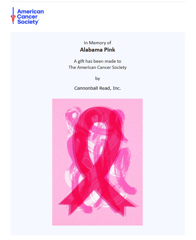 Please make your donation via Paypal, or donate to @cannonball-read at Venmo. If your employer participates in matching donations, please contact us to coordinate. As a 501(c)(3) nonprofit, Cannonball Read, Inc. should be findable in any charitable database, and that also includes both Facebook and Instagram fundraisers.