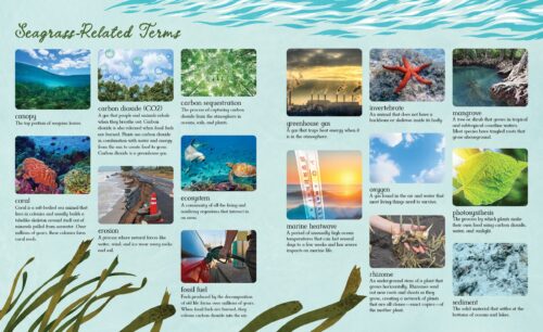 Overall, Meadows of the Sea: The Wonders of Seagrass by Michelle Schaub is a good story about the ocean with the metaphor of showing how it is like a meadow. This idea makes something that seems unfamiliar and even alien, take on a form that we know and can understand. The poetic nature of the first part (the story) is reminiscent of the ocean flow itself. The fact that the second part (actual factual information) is added on the page allows the book to grow with the child, making it for all ages. The extras included are another way to give more information and allow things to be “physically” seen (photographs versus the drawn images) especially if you are unable to visit an ocean. The only issue I have is that at the end the point is seemingly forced and it loses the rhythm of the rest of the story.