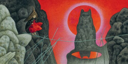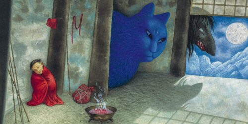 Amazing story, amazing illustrations, amazing feeling to it, even an amazing back story of the author. Perhaps more for adults (collectors of art books, of Japanese folk tales, of folk stories in general) than kids, it is a, yes, an amazing book. I can’t express how great I think it is. It is a soft story, with an odd tension that is not uncomfortable, but makes you move along. The boldly colored, richly and busily detailed images of Anita Kreituse are as important as the text. The art of the illustrations do not just support the written word, but they are the story as well.