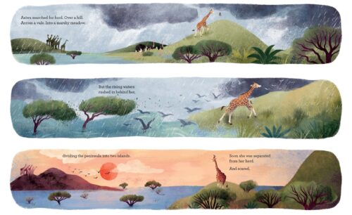 But Laurel Neme gave us more than just that. There is history and environmentalism. There is love of animals and the land. There is a lot going on. The story is of medium difficulty to older readers. Things are not simple, but not complicated. It is a good inbetween story. You might not have said, “WOW best book ever”, but you will say that it was cool and that you want to learn more. Not just about the real life animals that inspired this story, but about giraffes, the country and even the weather and how climate change is affecting it.