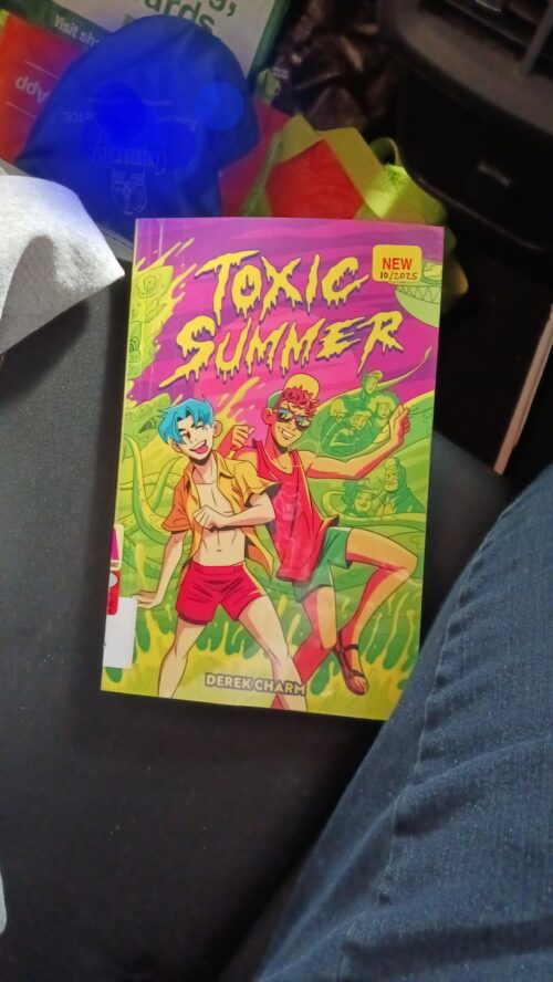 The cover of Toxic Summer by Derek Charm looks like it would be a fun, summer romance romp. Maybe it would have some misadventures or possibly a monster that is a masked one, or even one that has a “is it or isn’t it?” thought. But instead, it turned out to be a bit cartoonish and not always in a fun way. Still, if you like over-the-top antics, a bit of humor, and somewhat queer romance, this is the book for you. Of course, you might need to like thriller stories, with a smidgen of horror, as well as have a pennant for beach blanket bingo summertime antics to get the full experience. This is if Scooby Doo was out, Shaggy and Fred had a baby (and it was out), and the masked villains were not so masked. Like I said, cartoonish.
