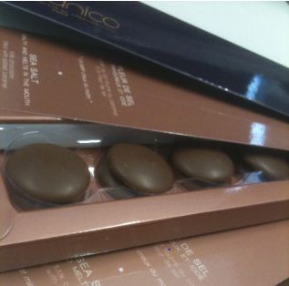 The milk chocolate is sweet but not cloying and interestingly not sticky like most milk chocolate is. The sea salt caramel is very liquid but without just dribbling out of the pastille. The milk chocolate has a deep flavour with a bit of a molasses hit (I think) which, for me, enhances the sea salt caramel.