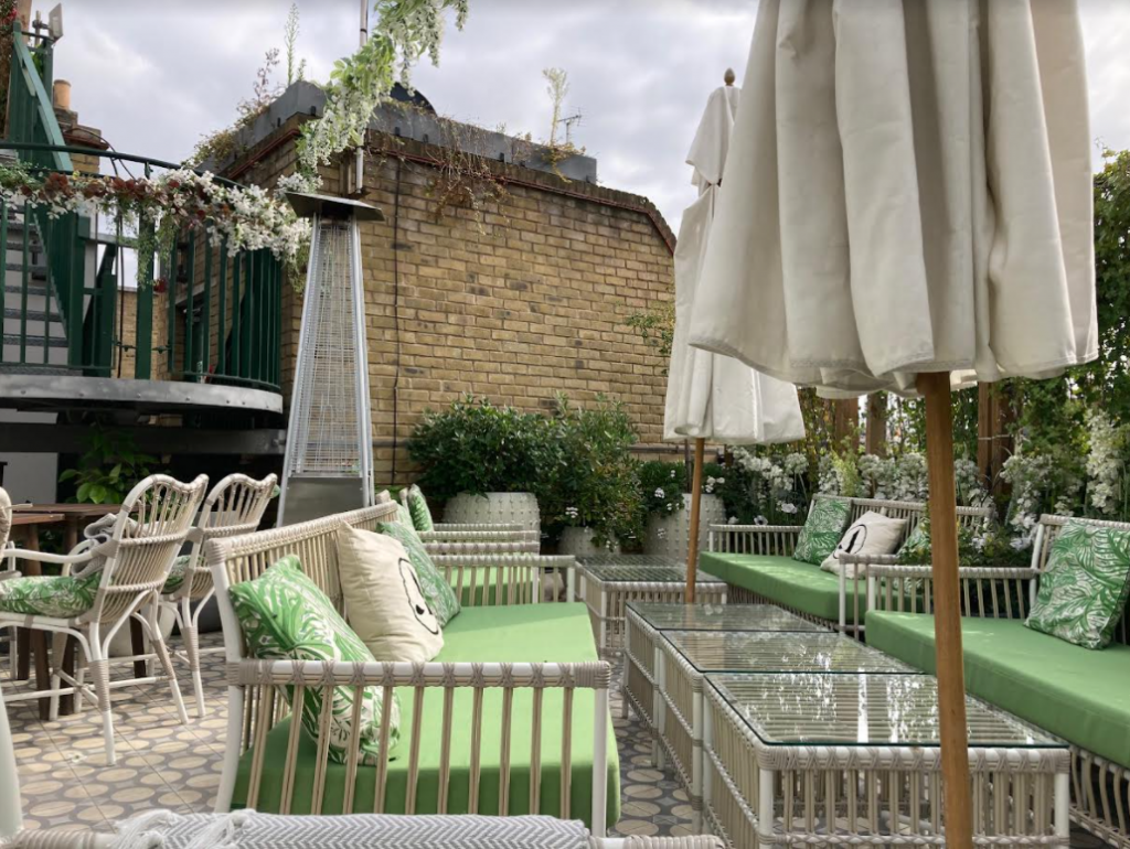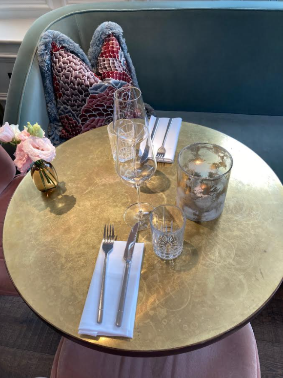 The outside space was beautiful – artificial flowers were carefully placed around for long-lasting colour that will be reused and maintained to keep the space bright without being wasteful. The seating was varied – offering a relaxed couch or a more formal table outside and of course the tables indoors.