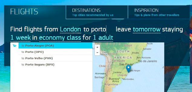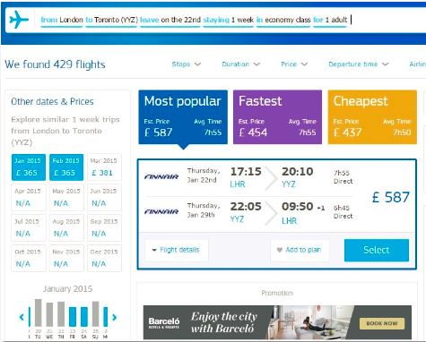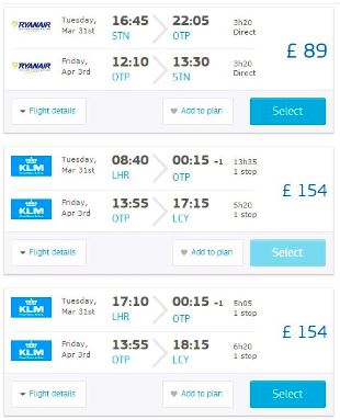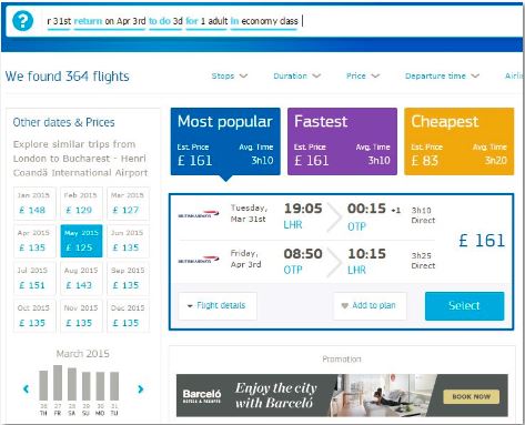 Anyway – that was Toronto and the natural language search – let’s use traditional search for the flight to Brasov. I can’t fly direct to Brasov so I choose Bucharest.