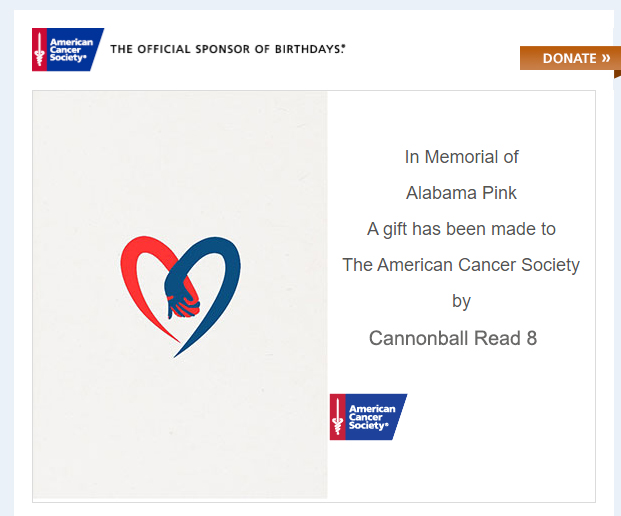 To close out the year, I’m so happy to tell you that we’ve made another donation, in the amount of $200, to the American Cancer Society in AlabamaPink’s name. I’m also pleased to note that our donation today was doubled, due to a group of generous donors to the American Cancer Society who have issued a challenge: They will match every gift made before midnight tonight, dollar for dollar, up to $25,000. So our donation was doubled, to make $400. That brings our group total for the year […]