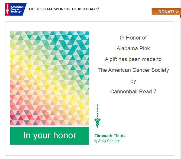 As you wend your way through Amazon’s Cyber Monday deals, don’t forget about our affiliate link,which just happens to be to a book written by one of the founders of Cannonball Read, Brian Prisco. You don’t have to buy Brian’s book, especially if you already have it on your shelves, but click over to it, and then shop. Every. Time. You. Shop. At. Amazon. Every time!! By doing so, you will be kicking cancer’s butt and donating to the American Cancer Society at no extra charge to you. So whether […]