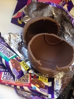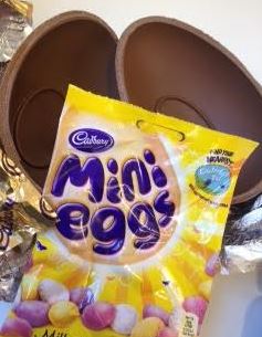 So what’s in the Cadbury range? Well, I’ve eaten my way through most of it and there is the traditional filled egg. I have one with mini eggs but there is also Dairy Milk eggs and caramel eggs so there is a range to choose from. Of course I chose the addictive mini eggs!