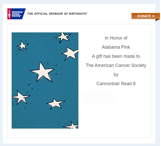Thank you, Cannonballers and friends! We’ve made another donation to The American Cancer Society! This time in the amount of $100. That brings us to $575, which is the largest amount we’ve ever raised. Find out what else you can do to help our mission to fight cancer.