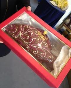 As you can see, this is a thick, luscious, gorgeously beautiful chocolate fish. Mine was in milk but they also are in dark and in dark the colours absolutely pop out. It makes the perfect hostess gift, Easter gift with a difference, crazy gift or just something for that chocolate lover in your life.