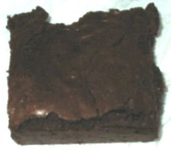 As you can see, this brownie looks normal enough. It has the requisite crunchy top, slightly broken once cooled. It is a lovely dark brown colour and it seems lovely and chewy. Taking a piece you can smell the scent of chocolate. The middle is a soft inviting chocolate with the edge a lovely crunchy surround.