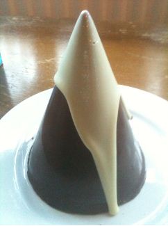 Next, get three of these Chocolate Christmas trees. They are absolutely beautiful and each one is unique. They have popping candy and beans on the inside which will delight kids but if you’d like to hint at what is underneath I recommend a small mirror or mirrored place and use small square ganache chocolates to support the tree slightly above the level of the plate/mirror and your guests will have a hint of what is inside.